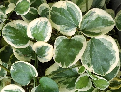 (斑入蔓日々草) 11月 キョウチクトウ科学名 Vinca major 'Variegata' 別名・別読み ビンカマジョール |