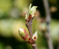 ![]() | 東京都某薬科大学2薬用植物園 にて | 殻を被ったままではわからないが、わずかに開き始めると葉芽とわかる。花芽と葉芽が一緒なのが ムシカリ 。中央が花芽で両側が葉芽。面白い姿なので、地元ではウサギノ耳と呼ばれている![]() ![]() |