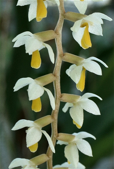 ![]() | 小石川植物園 にて | ビルマ、インドシナ、中国南に自生するランで、マレー半島〜ジャワ島に自生する エリアヒヤシンソイデス と同じく樹木などに着生する。日本では温室などで観賞用として栽培される![]() ![]() |