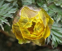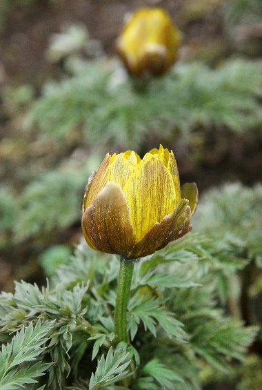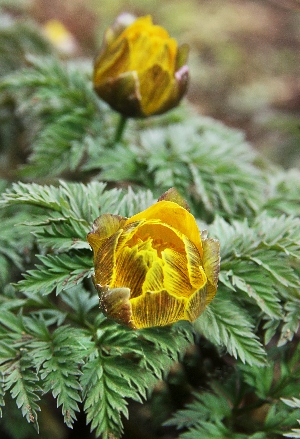 ![]() | 東京都某薬科大学2薬用植物園 にて | フクジュソウのつぼみ。花は陽が当たると開き、夜間、曇天は閉じるのだが、気温は少し低かったが晴天だったので、つぼみであろうと判断![]() ![]() |