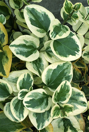 ![]() | 東京都大田区 にて | ツルニチニチソウ の園芸品種で、その名前のとおり、葉にクリーム色の斑が入る。常緑なの冬には葉観葉植物としても見応えがある。![]() ![]() |