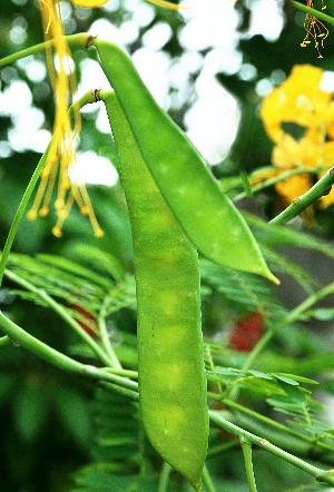 ![]() | 東京都夢の島熱帯植物園 にて | オウゴチョウの実。マメ科なので エンドウ 、 ヤブマメ 、 ネムノキ のような鞘に入った種子となる![]() ![]() |