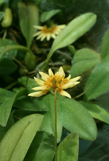 などと同様に樹木や岩上に着生して育つ着生ラン。日本では主に鉢植えで観賞用に栽培される