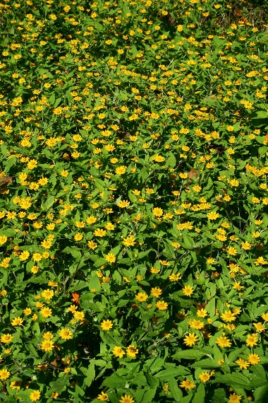 メキシコ〜中央アメリカに自生する一年草。耐暑性が強く夏から秋までと花期も長い。花が咲き終わると覆い隠すように新芽が伸びて新たな花が咲くので、手をかけなくても一面に広がる