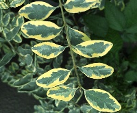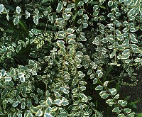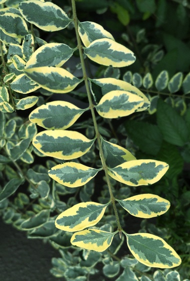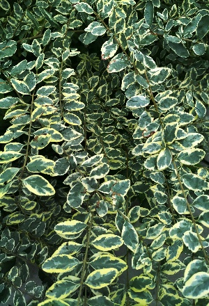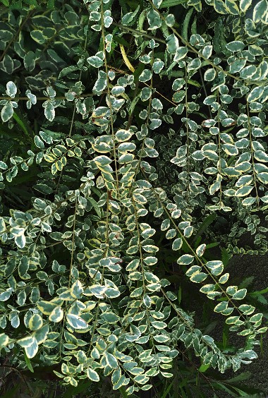 と同属だが、葉にクリーム色や白色の班が入る常緑性低木。和名では西欧産のような名がつくが、中国原産。日本ではシルバープリペットの名で流通し、鉢植えや生垣、や庭木として鑑賞される。