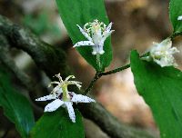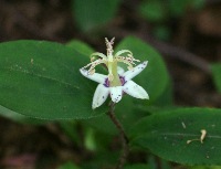 ![]() | 東京都三頭山 にて | ホトトギス が1株に多くの花を付けるのに比べ、ヤマホトトギスは3〜5個と少ない。中には1個だけのものも。この三頭山では タマガワホトトギス も見ることができる![]() ![]() |